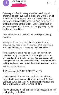 JC Kay: 私の性的な話や行動は周波数が低く、メッセージの信頼をを損なうと言ってきたある方の返答です。 私を囲い込むな – 私は羊ではない!